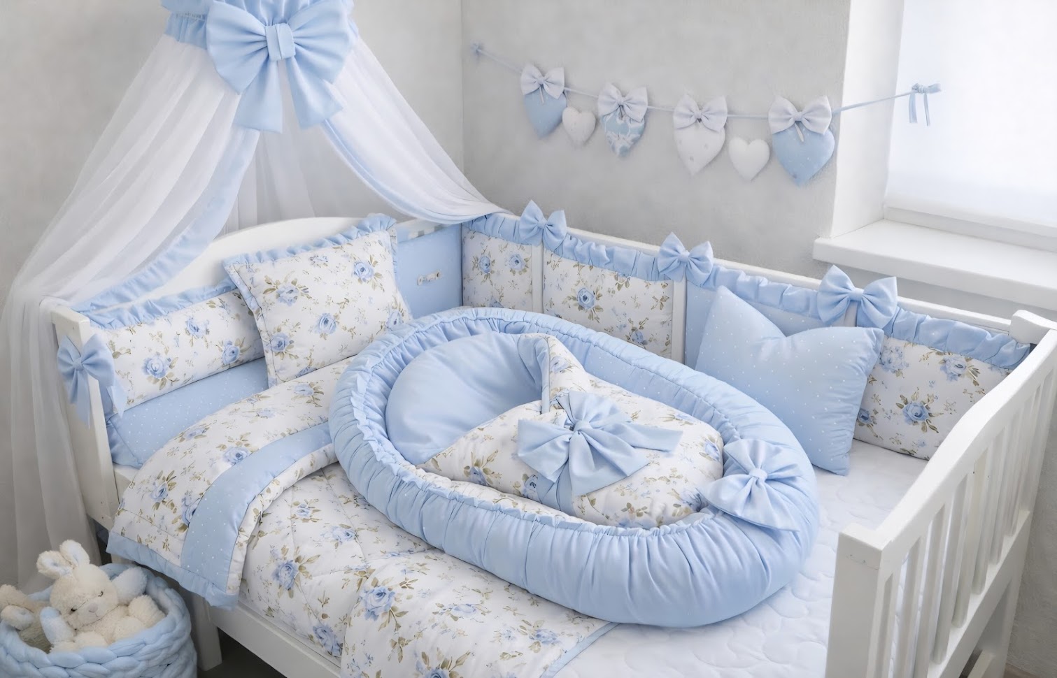 Oboustranné hnízdečko (vnitřní plocha 40 × 80 cm): Extra velké hnízdečko poskytuje miminku pocit bezpečí, na který bylo zvyklé u maminky v bříšku. Díky oboustrannému provedení můžete měnit vzhled postýlky podle nálady.