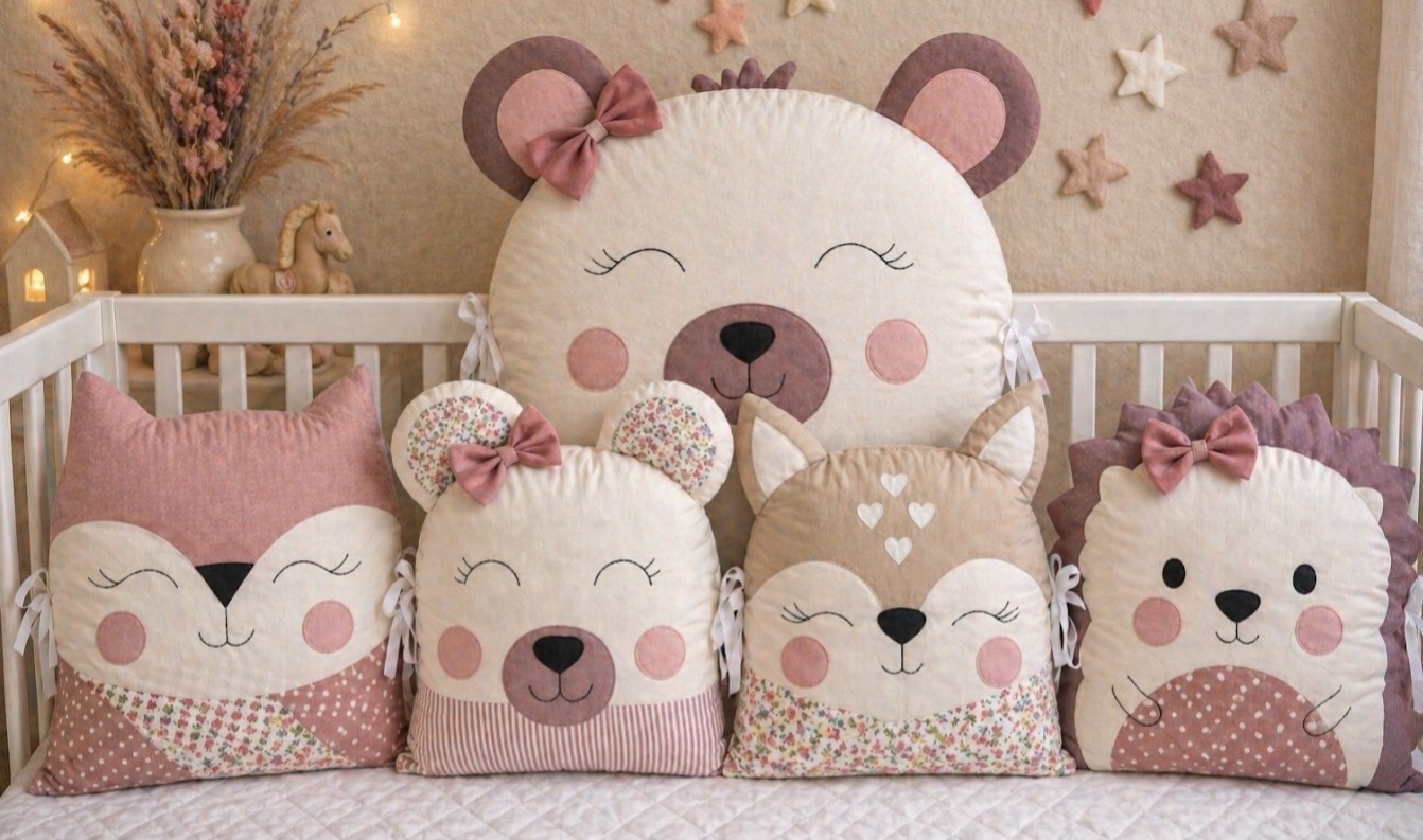 Sada obsahuje pět polštářkových kamarádů: dominantní velkou medvídkovou slečnu s mašlí, malou medvídkovou kamarádku, roztomilou srnečku se srdíčky, lišku a ježečka. Každý detail je promyšlen tak, aby ladil s jemnou dívčí duší.