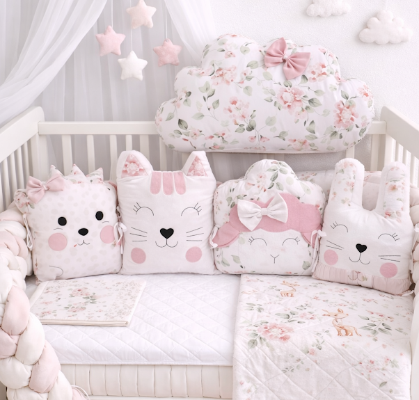 Dopřejte svému miminku spánek v doprovodu těch nejněžnějších vzorů. Tento luxusní 5dílný set v harmonické kombinaci pudrově růžové a šedé barvy přináší do postýlky styl i maximální bezpečí. Celková délka 180 cm vytvoří měkkou a prodyšnou bariéru podél bočnic postýlky, čímž chrání před průvanem i nárazy. Set vyniká jemnými ornamentálními motivy a elegantními mašlemi, které dodávají celku nadčasový vzhled vhodný do moderních interiérů.