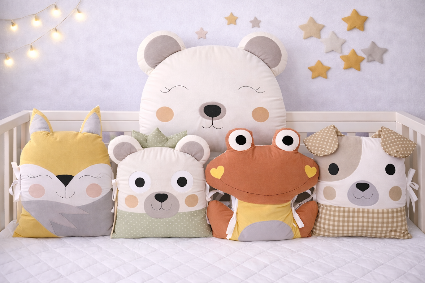 Flexibilní uspořádání: Každý polštářek má praktické šňůrky, takže si zvířátka v postýlce můžete uspořádat přesně podle svých představ.