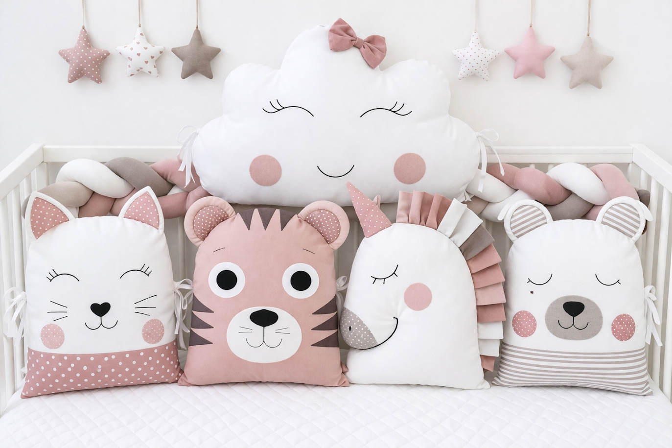 Proměňte postýlku v pohádkové království plné jemnosti. Náš 5dílný set polštářkových mantinelů v odstínech pudrově růžové, bílé a šedé je splněným snem každé malé princezny. S celkovou délkou 180 cm poskytuje nejen vizuální nádheru, ale především maximální bezpečí pro klidný spánek.