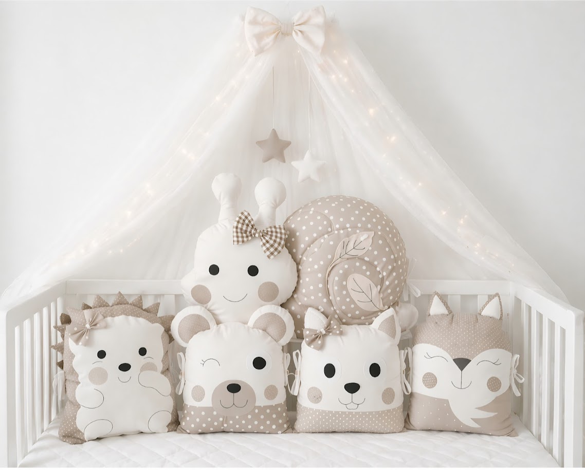 Proměňte postýlku v nejútulnější a nejbezpečnější místo v domě. Náš 5dílný polštářkový mantinel není jen praktickou ochranou před tvrdými příčkami postýlky, ale stane se prvním interaktivním světem vašeho miminka.