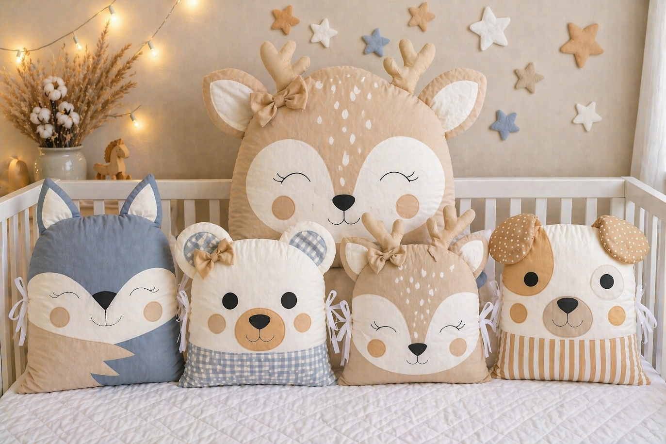 Flexibilita: Polštářky můžete v postýlce libovolně kombinovat. Skvěle poslouží i později jako samostatné dekorace nebo opěrky při čtení pohádek.