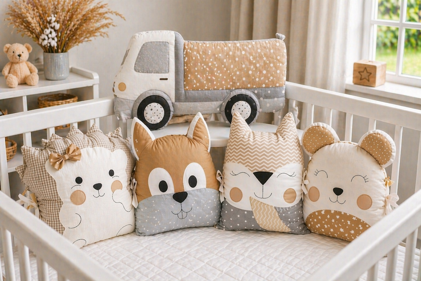 Dominantní Nákladní auto: Velký polštář ve tvaru náklaďáku se stane okamžitě středobodem postýlky a nejoblíbenější hračkou vašeho malého objevitele.