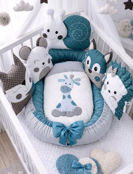 Dopřejte svému děťátku stylové a bezpečné útočiště s naší sadou „Petrolejová žirafa“. Tato barevná kombinace je ideální volbou pro rodiče, kteří hledají moderní design, který nepůsobí rušivě, ale zároveň je hravý díky roztomilým zvířecím motivům. Každý prvek sady je navržen tak, aby chránil vaše miminko a poskytoval mu pocit klidu a bezpečí.