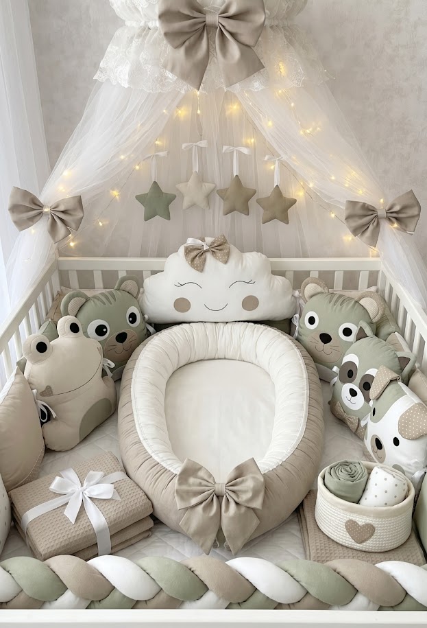 Milujete minimalistický a nadčasový styl? Naše sada v kombinaci jemné béžové a tlumené šalvějové vytvoří z postýlky oázu klidu a harmonie. Tento 5dílný set mantinelů a hnízdečka je navržen tak, aby chránil vaše miminko a zároveň vypadal naprosto úchvatně v každém moderním pokojíčku.