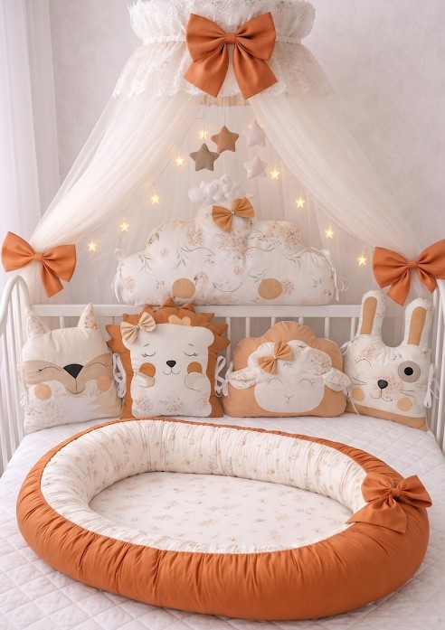 Představujeme vám naši limitovanou edici výbavičky v nádherném terakotovém odstínu, který symbolizuje teplo domova a klid. Tento set není jen krásnou dekorací, ale především funkčním prvkem, který zajistí vašemu děťátku maximální bezpečí a komfort od prvního dne.