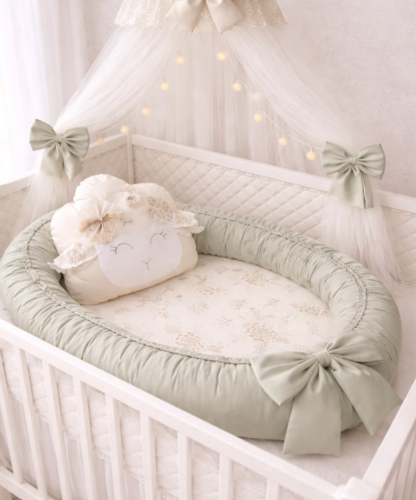 Představujeme vám naše nejromantičtější oboustranné hnízdečko, které kombinuje uklidňující šalvějový odstín s jemným květinovým motivem. Toto hnízdečko není jen pelíškem, je to bezpečný přístav, ve kterém se vaše miminko bude cítit jako v bavlnce. Třešničkou na dortu je originální polštářek ve tvaru ovečky, který dodává celému setu neodolatelný vzhled.