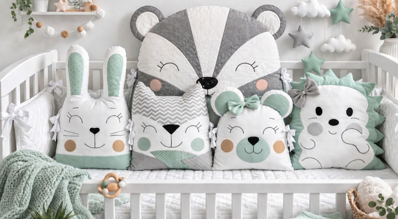 Všestranné využití: Polštářky lze díky tkanicím libovolně přivázat, nebo je později využít jako dekoraci v dětském pokojíčku.