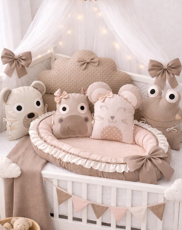 | Obsah setu | 1x Minky obláček, 4x zvířátkový polštář, 1x hnízdečko s volánkem |