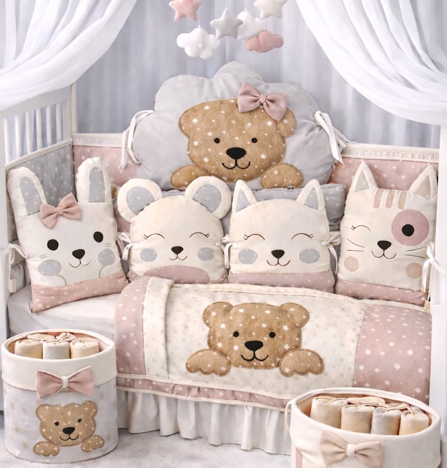 Jemně sladěný set, který chrání miminko před tvrdými příčkami postýlky