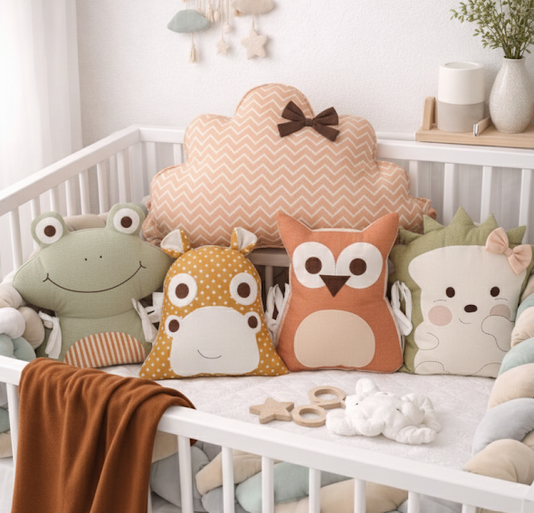Zvířátkový mantinel do postýlky 5 dílů (180 cm) – Hřejivé bezpečí v přírodních tónech