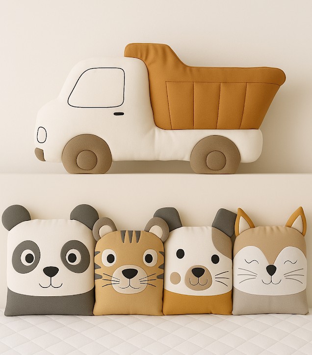 Caramel Dump Truck Friends je kolekce, která vnese do dětského pokojíčku teplo, radost a jemnou hravost. Spojení karamelové, krémové, světle šedé a přírodně hnědé působí velmi uklidňujícím dojmem a krásně ladí s moderními přírodními interiéry.