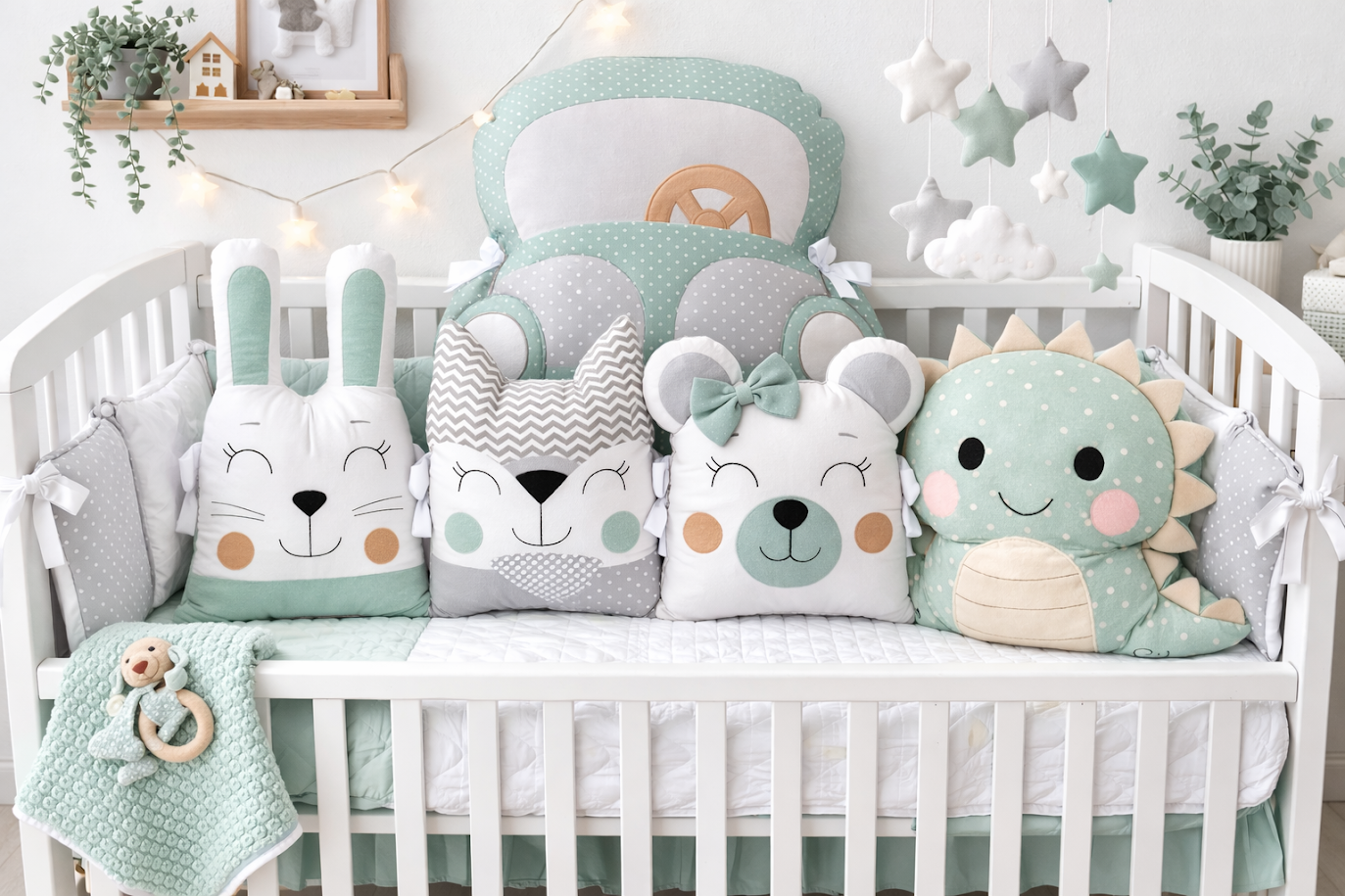 Co se stane, když se parta lesních zvířátek rozhodne vyrazit na výlet stylovým autíčkem a cestou potká přátelského dinosaura? Vznikne kolekce „Jízda do pravěku“! Tato sada je stvořená pro všechny malé dobrodruhy, kteří potřebují cítit bezpečí, zatímco jejich fantazie cestuje do vzdálených světů. Jemná šalvějově zelená v kombinaci s neutrální šedou a čistě bílou vytváří v postýlce moderní a uklidňující prostor, který neruší spánek, ale podněcuje radostné probouzení.
