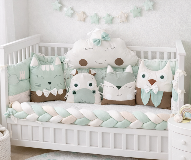 Proměňte postýlku v kouzelné lesní zákoutí. Naše kolekce Mátový les kombinuje osvěžující mátovou barvu s hřejivými odstíny hnědé a krémové. Tento 5dílný polštářkový mantinel vytvoří kolem vašeho miminka měkkou bariéru, která ho ochrání před tvrdými šprušlemi a zajistí mu pocit maximálního bezpečí po celou noc.