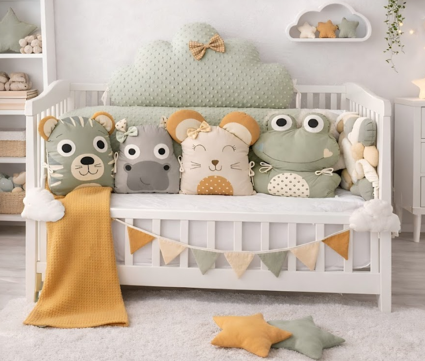 Vneste do postýlky svého miminka kousek radosti a tepla. Kolekce Slunečný les je stvořena pro rodiče, kteří hledají něco jiného než tradiční barvy. Spojení uklidňující šalvějové zelené s veselými hořčicovými tóny vytváří v pokojíčku unikátní atmosféru plnou klidu a optimismu. Tento 5dílný mantinel není jen bezpečnostním prvkem, ale dominantním doplňkem, který rozzáří celý prostor.