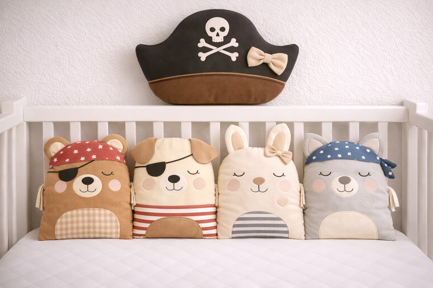 Kolekce je ideální pro rodiče, kteří chtějí tematický design bez křiklavých barev, s důrazem na estetiku, kvalitu a dlouhodobou použitelnost. Malí piráti se krásně kombinují s neutrální výbavou i dalšími produkty MimiMe.