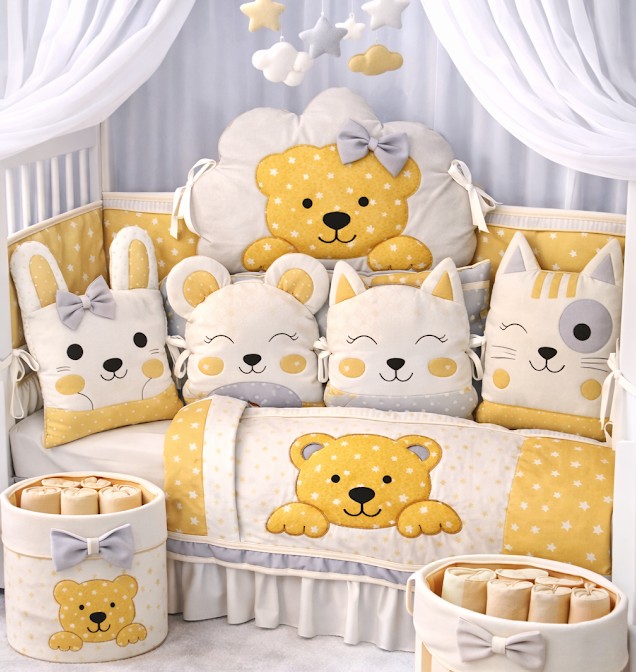 Jemně sladěný set, který chrání miminko před tvrdými příčkami postýlky