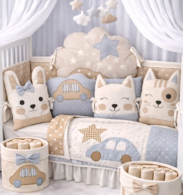 Jemně sladěný set, který chrání miminko před tvrdými příčkami postýlky