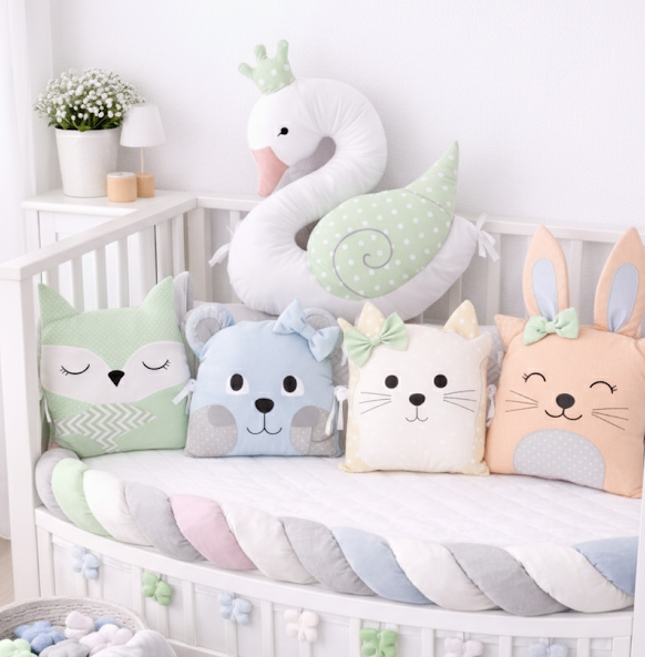 Náš zvířátkový mantinel není jen obyčejný ochranný mantinel do postýlky. Je to parta pěti věrných společníků, kteří s láskou ohlídají klidný spánek vašeho děťátka. Každý polštářek má svou vlastní tvářičku – v naší nabídce najdete roztomilé pejsky, medvídky, ježky, zajíčky i kočičky. Mantinel spolehlivě ochrání miminko před nárazy do příček a vytvoří pocit hřejivého hnízdečka.